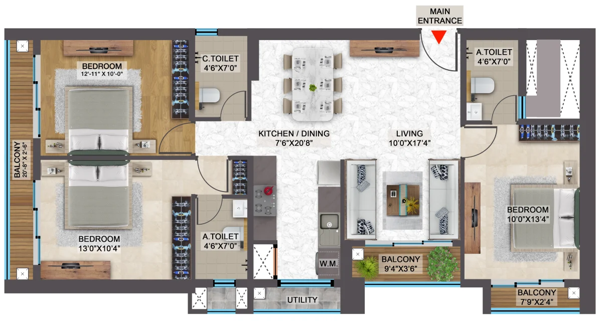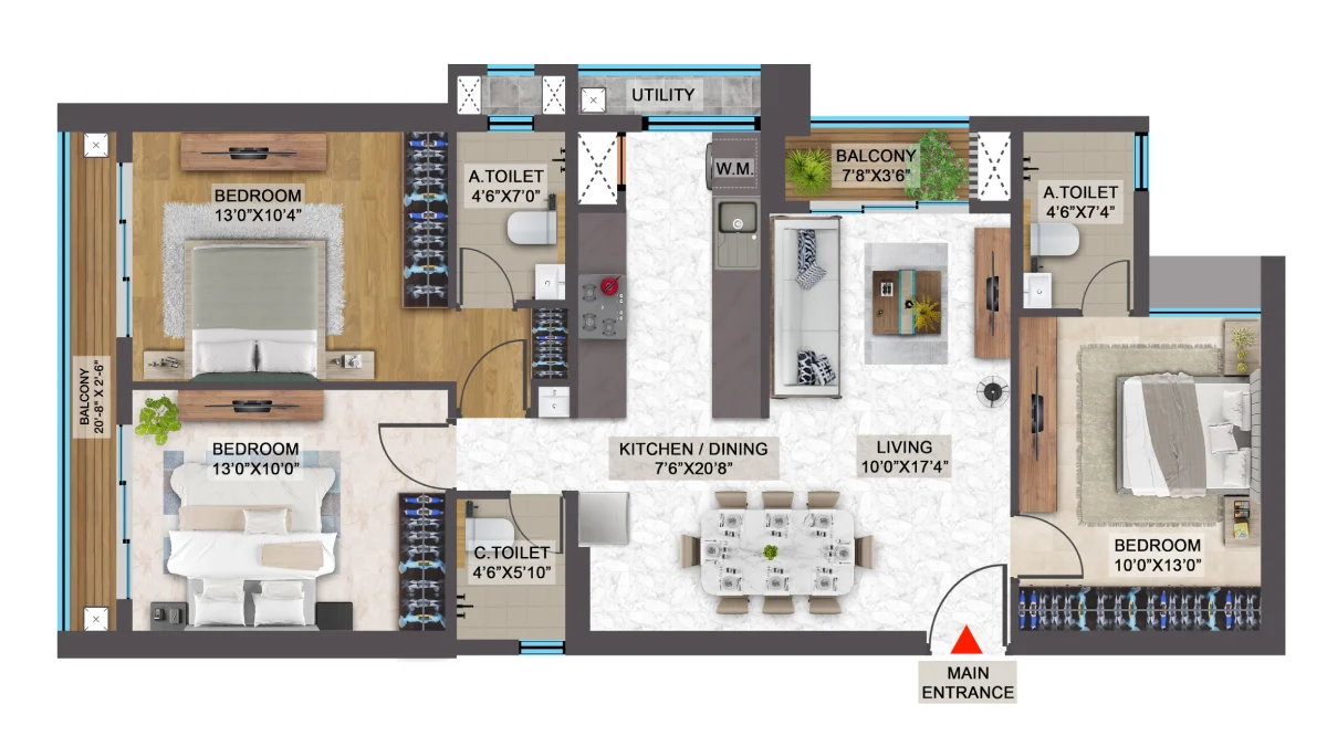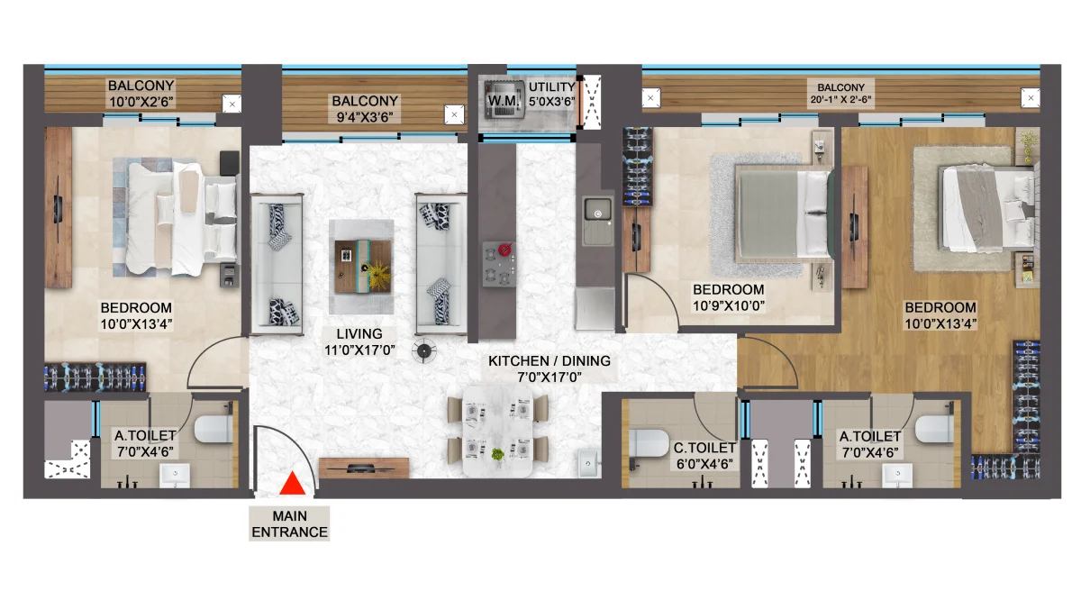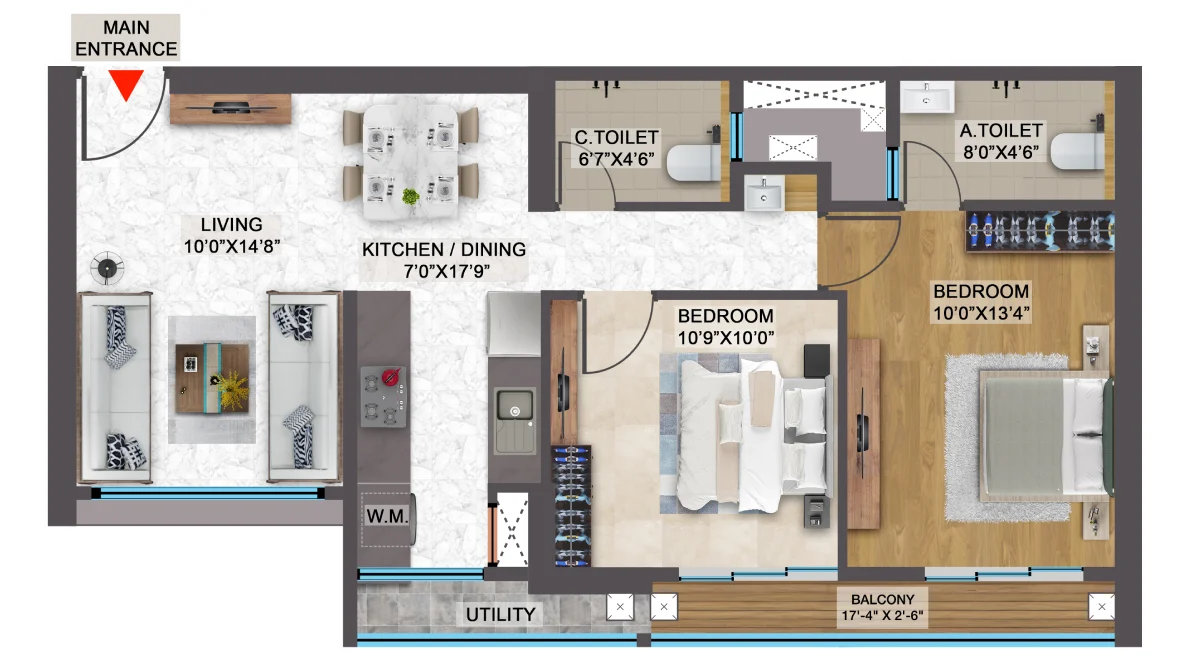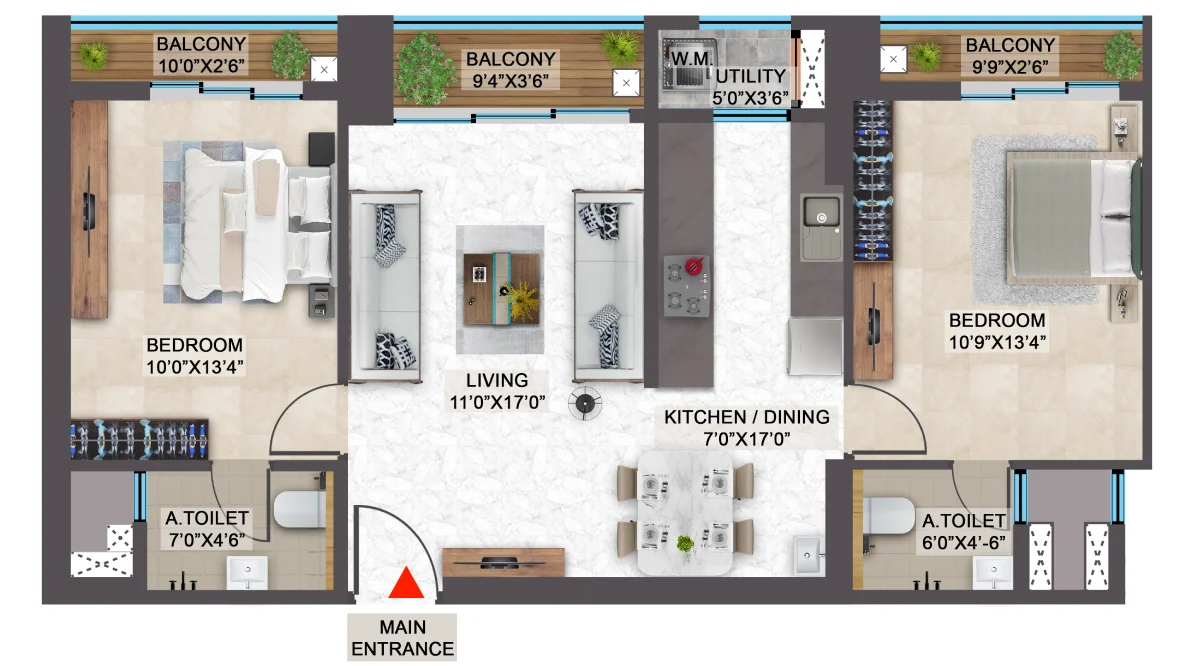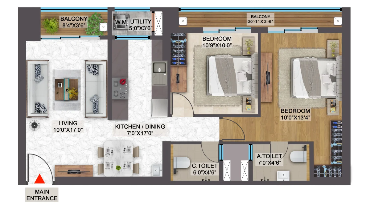 2 BHK | 1075 - 1166 Sq.ft | Enquire Now |
